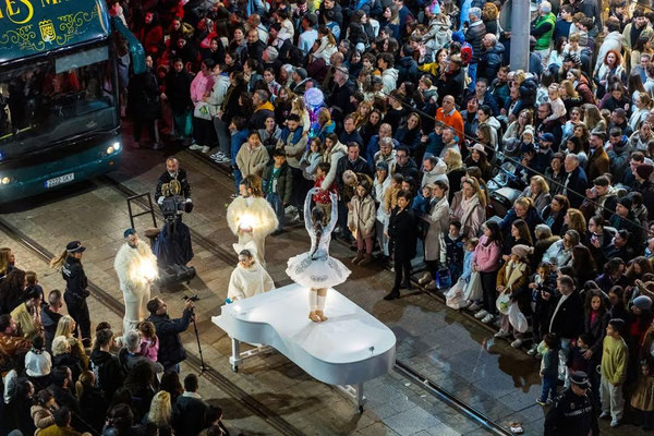Un piano de cola blanco itinerante "Exclusivo en España" Un/a pianista interpreta en directo delicadas melodías que envuelven al público en un ambiente mágico.
